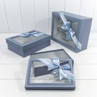 Коробки Прямоугольные Набор 1/3 33,5*25*11,5 с окошком и бантом Синий 1/12 Арт: 720630/3