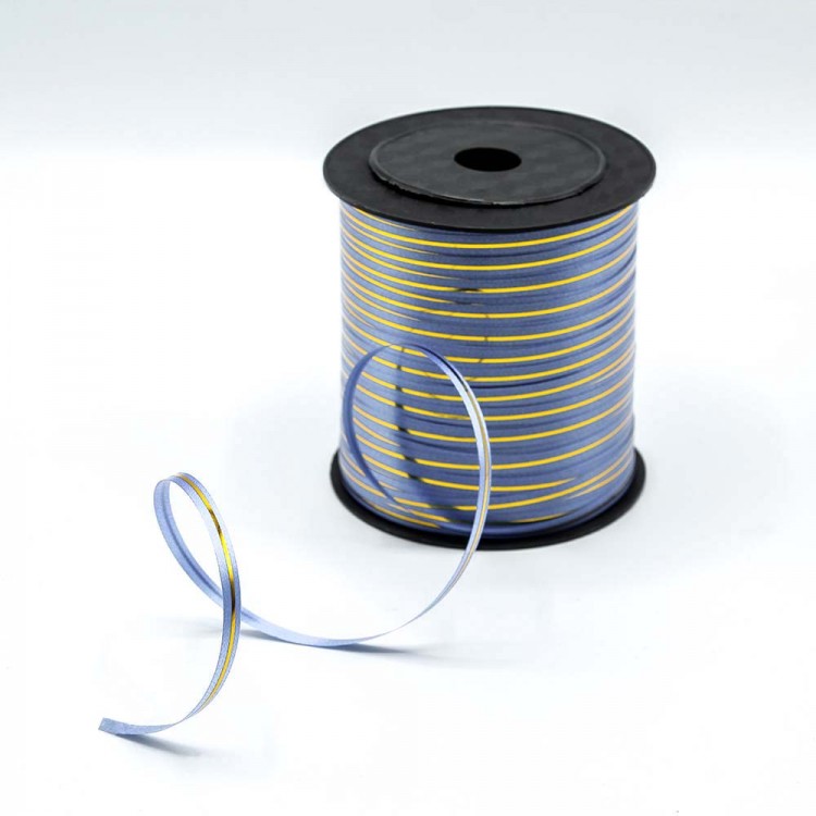 Лента Полипропилен (бобина) с золотой полосой 0,5см*250ярд Синий 1/5 1/60 Арт: 500580/7